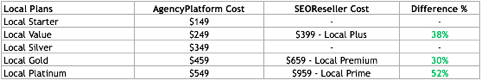- Our local plans are much cheaper and offer more deliverables compared to SEOReseller.